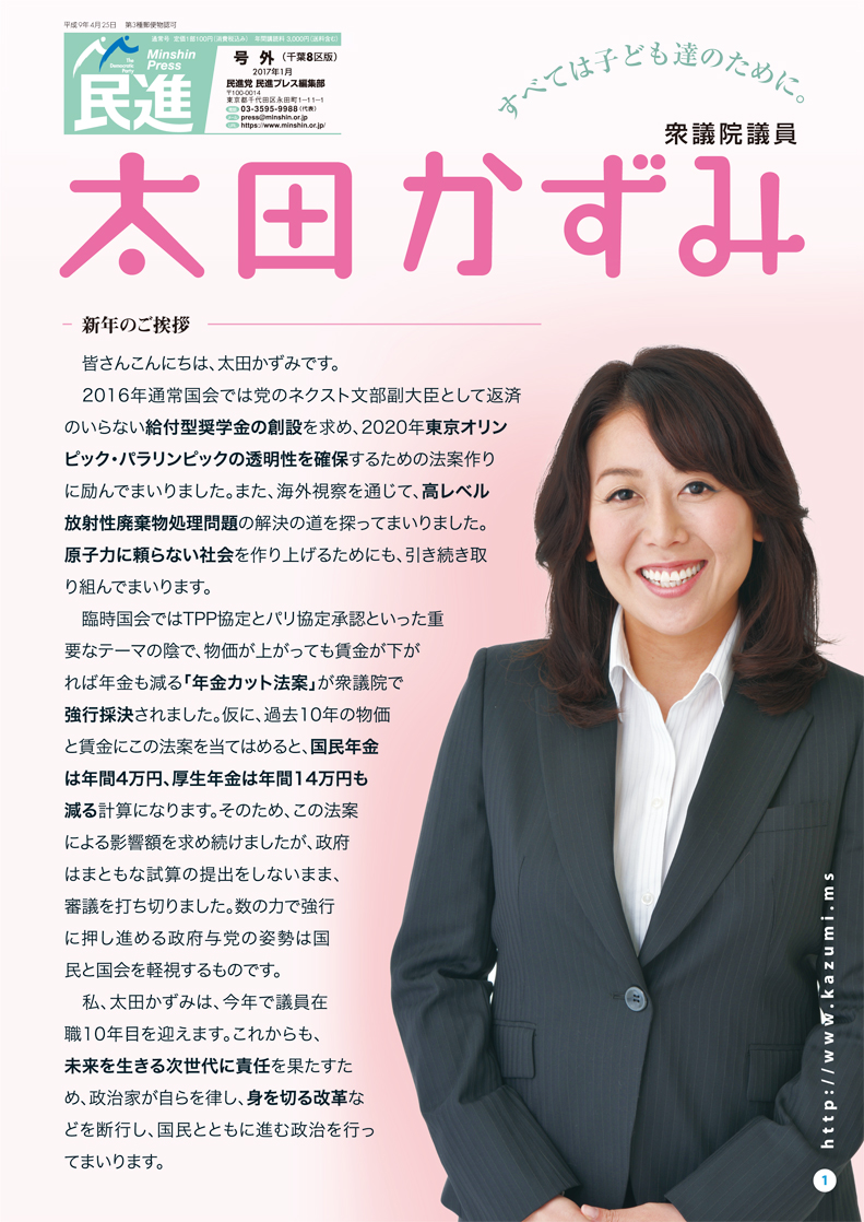 国会議員として10年目を迎える太田かずみさんにインタビューしました