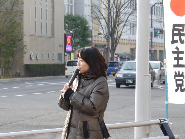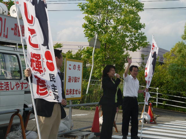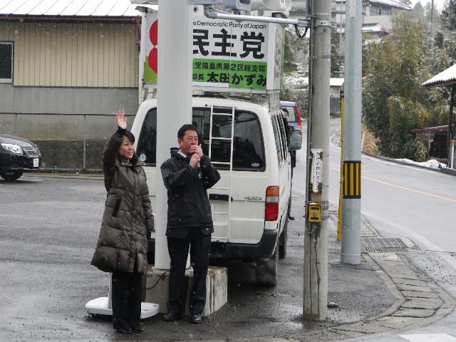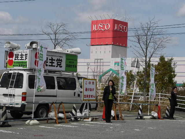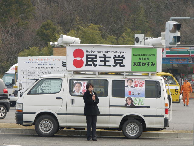 早朝街頭活動。田村町山中セーブオン前にて。 |