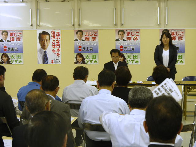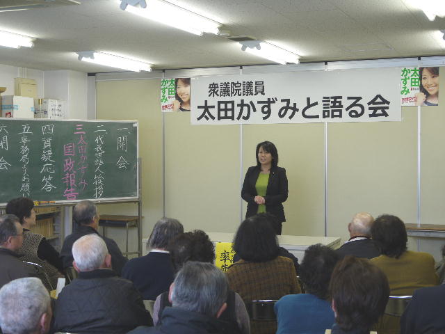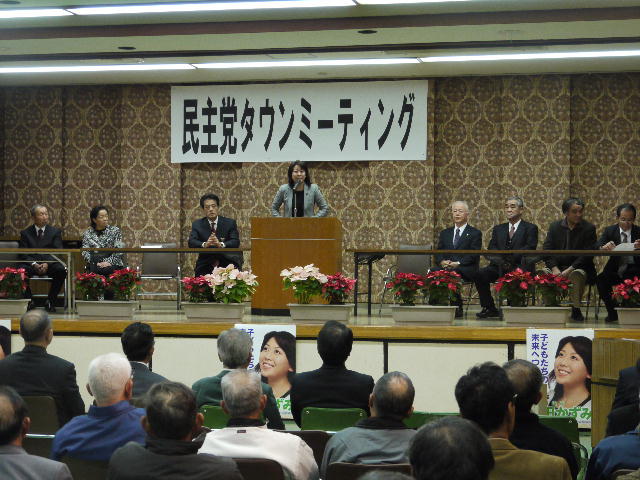 岡田幹事長を招いてタウンミーティング 本宮中央公民館にて |