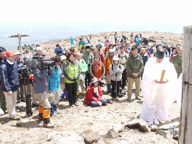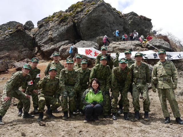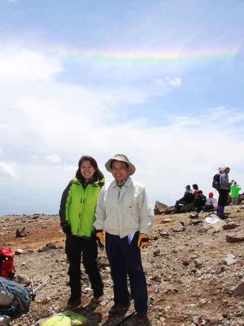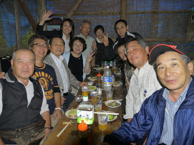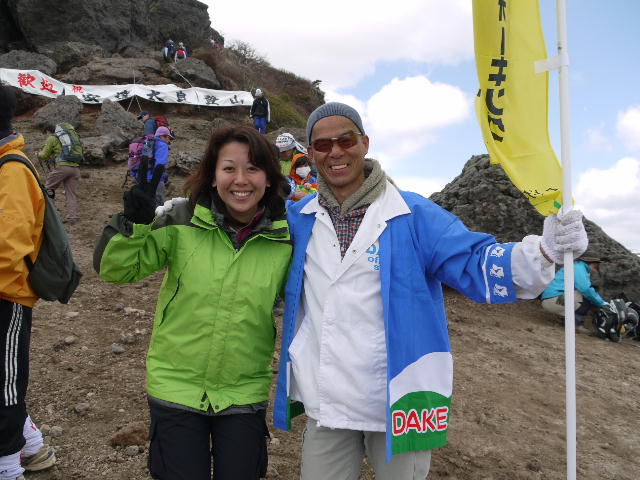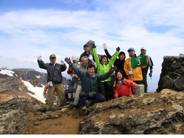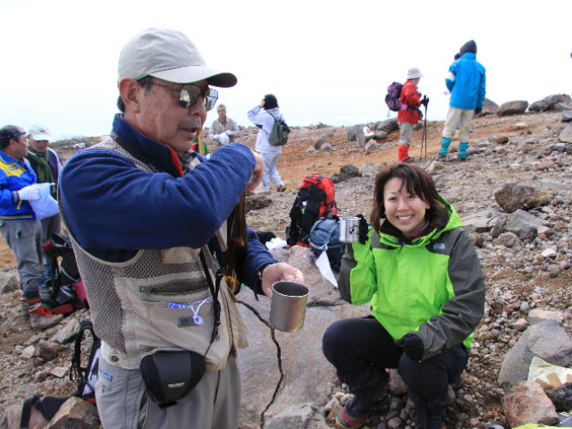 安積登山クラブ佐藤栄会長と無事登頂の乾杯 |