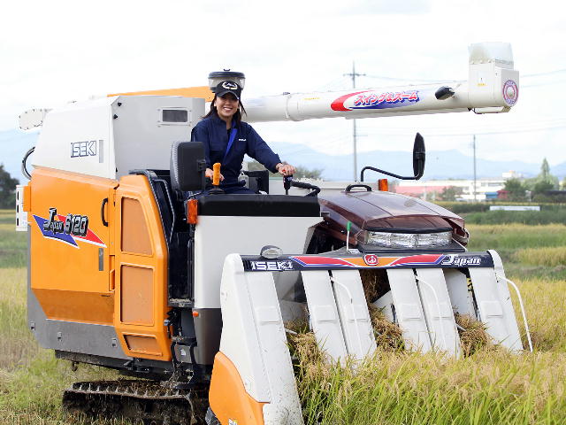 ヰセキの最速コンバイン「JAPAN」で稲刈り、日和田にて |