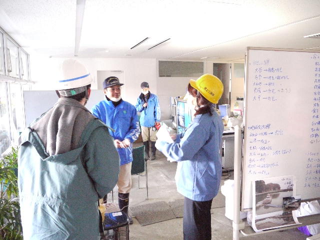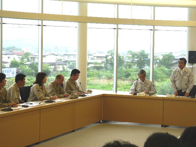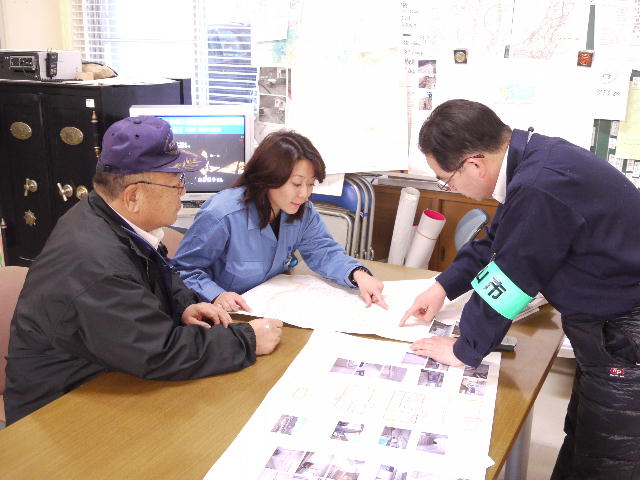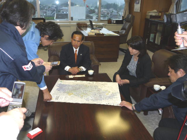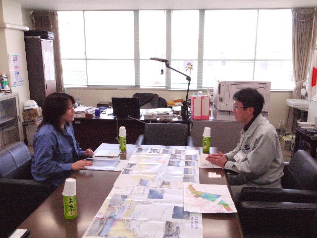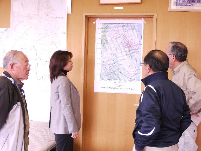 二本松市東和支所にて、浪江町副町長らと線量マップを見る |