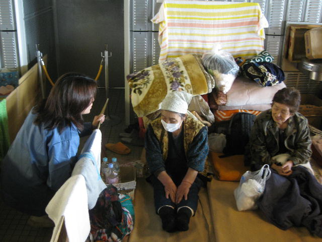 4月18日 衆議院災害特別委員会とともにビッグパレットに避難している富岡町、川内村の皆さんを激励 |