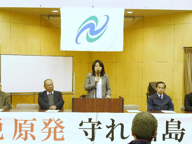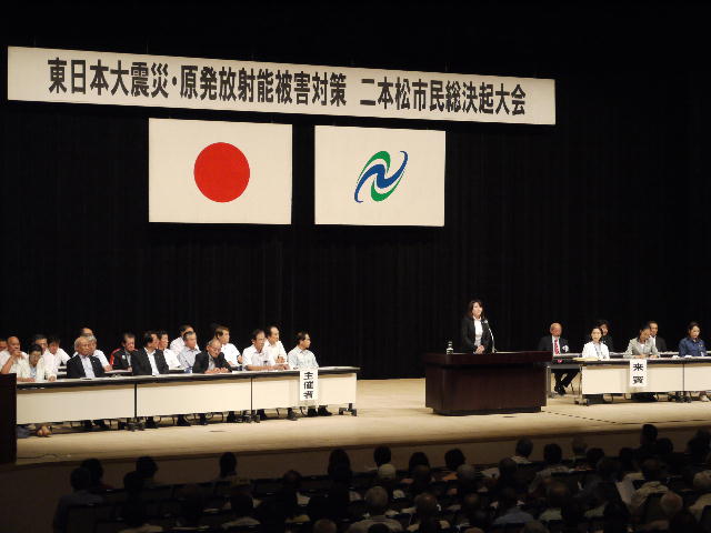 二本松市民会館で東日本大震災・原発放射能被害対策二本松市民総決起大会が開かれ、農業者、商工業者、観光業者、PTA、子育てグループ、区長会、女性団体の代表からそれぞれ現状報告及び提言が発表されました。太田和美も挨拶のなかで決意を述べました。