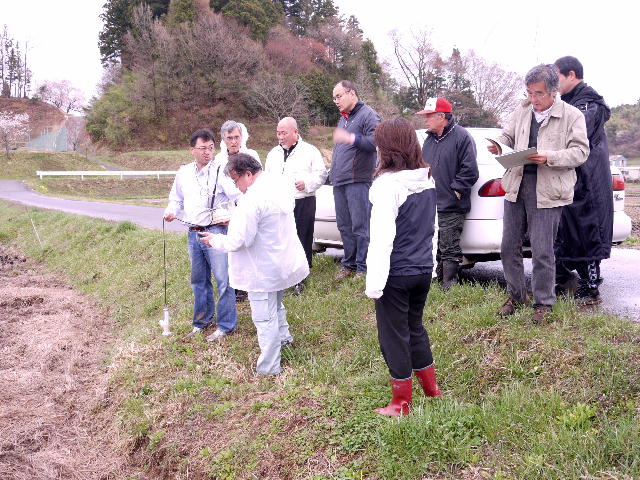 4月23日 本宮市にて、名古屋大学生物機能開発利用研究センター教授、東京大学大学院教授らによる土壌調査に同行 |