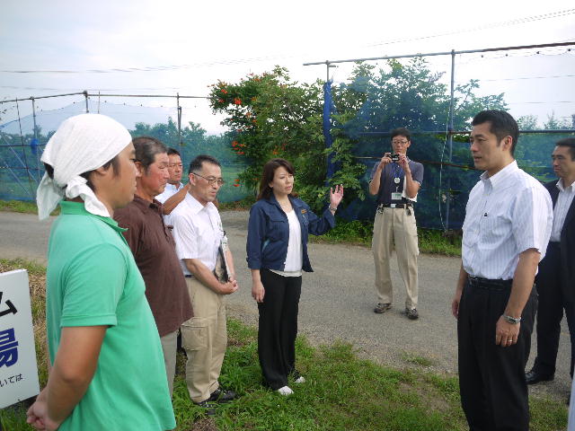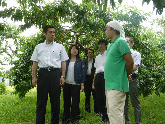 8月6日 細野豪志内閣府特命担当大臣と桃農家へ |