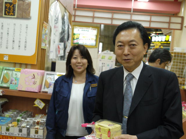 10月15日 郡山の銘菓を買う鳩山元首相 |