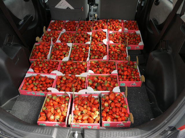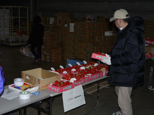 3月23日、県内の福島第1原発に近い地域の皆さんの避難所になっている郡山市内の「ビッグパレット」に、イチゴ27箱(約25キログラム)をお届けしてきました。このイチゴは市内のイチゴ園さんのご厚意で提供いただいたものです。避難所では、野菜や果物などが不足しており、たいへん喜んでいただきました。